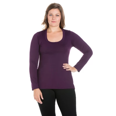 Our Solid Long Sleeve Scoop Neck Top is essential to any wardrobe. This long sleeve plus size t-shirt layers beautifully and is available in six must have solid colors. The fitted yet comfortable style give this top a polished look that can be worn alone or layered.