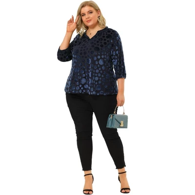 Agnes Orinda is a plus-size brand inspired by the need of its customers. It can suit you in various occasions, show your perfect curves through appropriate tailoring, and the comfortable fabric allows you to enjoy a pleasant experience. Cut from velvet fabric for a soft, semi-sheer look, this loose-fitting shirt is patterned all over with Polka Dots for a velvet like feel. With mesh elastic v neckline and voluminous puffed sleeves, pair yours with skinny jeans and heeled boots for your evening plans.