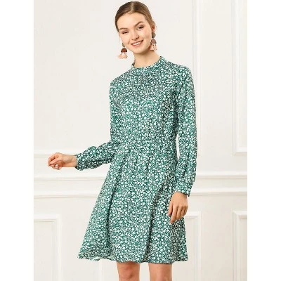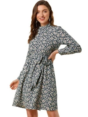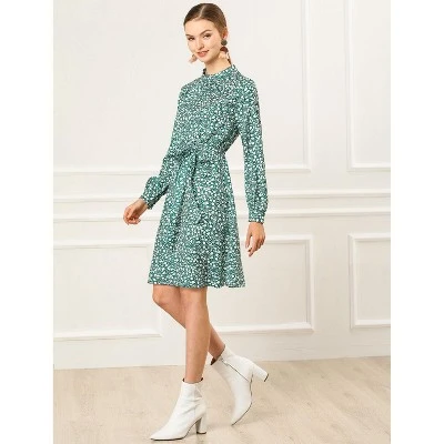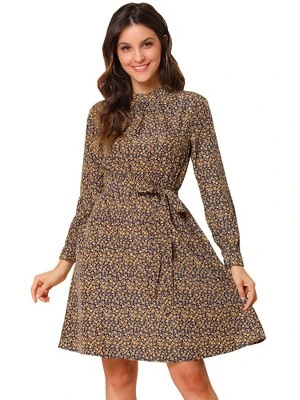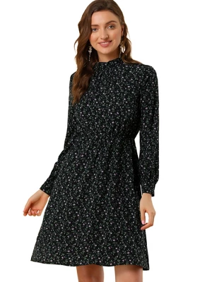 The bohemian floral prints with wine hues and flattering shapes look cute and suitable for people of all ages. The fabric looks very light and comfortable, and it is silky and elegant. It is designed with a tie waist, but you can choose to wear it without a belt. The knee-length design and an elastic waist add gentle movement to this softly pleated floral dress. High collars and long sleeves are suitable for spring and autumn, keeping you warm when the temperatures start to drop.