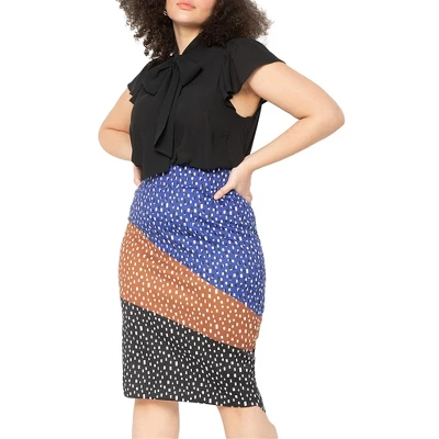 Flutter sleeve tie neck blouse Easy fit Sleeveless Flowy woven double georgette Side vents Hits at hip Model is 5’9″ size 14 Length on model is 26 1/2″100% PolyesterCare: Machine wash on a cold, gentle cycle with like colors. Only non-chlorine bleach when needed. Tumble dry low. Cool iron as needed.