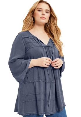Pretty and lightweight, this will be your new every day top. Designed with a tie neckline and light shirring.