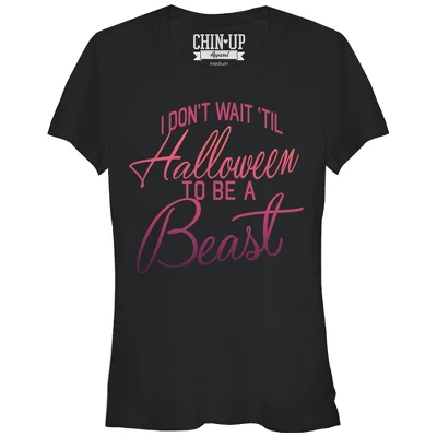 You don’t need tricks or treats to get yourself to the gym…you’re a beast all year round with the Chin Up Halloween Beast Black T-Shirt! This fun fitted black tee reads “I don’t wait ’til Halloween to be a Beast” in an ombre style text that fades between pink and orange print.