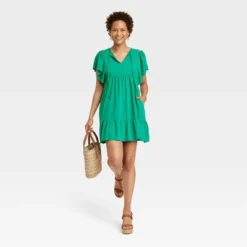 Create a beautiful, breezy summertime look with this Kimono Short-Sleeve A-Line Dress from Knox Rose™. Designed in cool white, this knee-length dress has a front keyhole neckline with drawstring ties, short kimono sleeves, and a ruffled hem for a fluttery finish. Colorful lace-like striped accents on the front bodice pop out from the white background, and the side pockets complete the design with functional flair. Plus, the cotton-blend slub construction and 100% cotton voile lining help keep you comfortable no matter what the day holds.