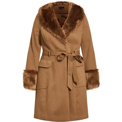 Slip into the refined Make Me Blush Coat this season for functional warmth. Featuring a most fabulous faux fur collar, long sleeves and an adjustable waist tie, this gorgeous coat is a lush style statement. Bold and fiercely fashionable, no one does plus size fashion like City Chic. Loved around the globe for its diverse range of fashion-forward styles for any occasion. From show-stopping evening gowns to workwear and casualwear, City Chic will take your style to bold new heights. Available in sizes 14-32.